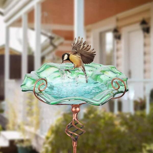 31 in. Bird Bath Glass Outdoor Birdbaths Garden Yard Decor Bird Feeder with Metal Stake Green