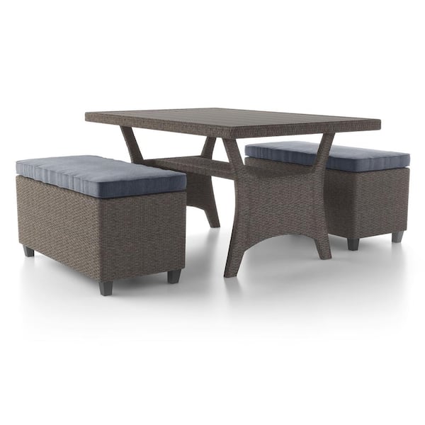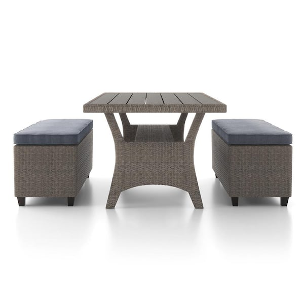 Dasan Gray 3-Piece Wicker Outdoor Dining Set with Gray Cushions