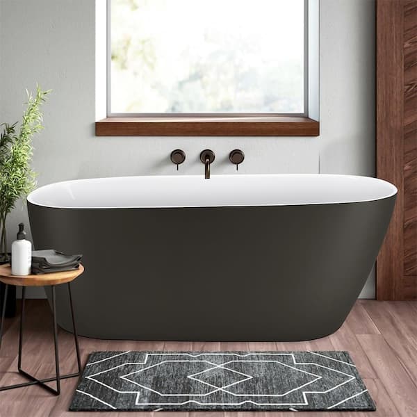 59 in. L x 28.34 in. W Acrylic Flatbottom Freestanding Single Slipper Soaking Bathtub with Left Drain in Matte Gray