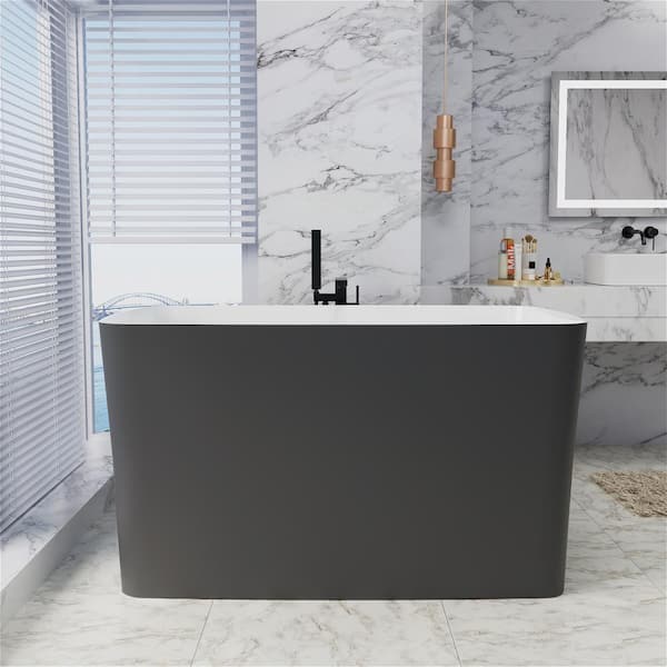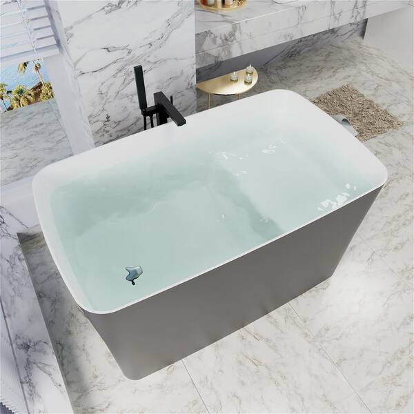 59 in. W x 30 in. L Minimalist Acrylic Freestanding Soaking Bathtub Tub Not Whirlpool CUPC Certificated in Gray