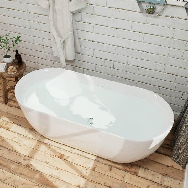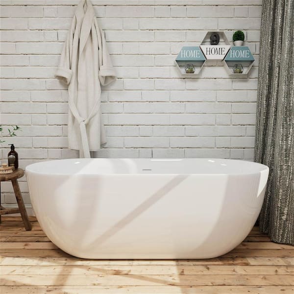59 in. x 28 in. Acrylic Flatbottom Freestanding Soaking Bathtub with Center Drain in White