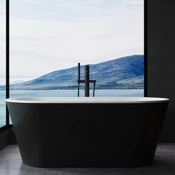 60 in. L x 29 in. W Acrylic Freestanding Soaking Flatbottom Non-Whirlpool Bathtub with Drain, CUPC Certified in Black