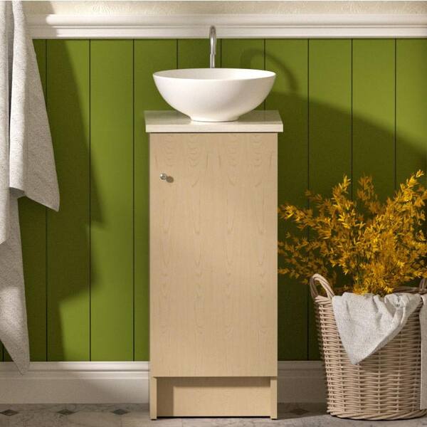 MIN 18 in. W x 19 in. D x 36 in. H Small Freestanding Bathroom Vanity in Oak with White Vessel Sink Cultured Marble Top