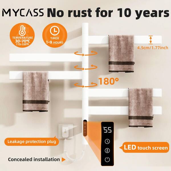 Rotary Model 5-Bar Plug-In 150-Watt Towel Warmer Smart Touch Screen Digital Display High Waterproof level in White
