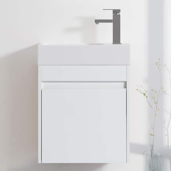 SEM 18.1 in. W x 10.2 in. D x 22.8 in. H Floating Small Bath Vanity in White with Concealed Handle and Ceramic Sink Top