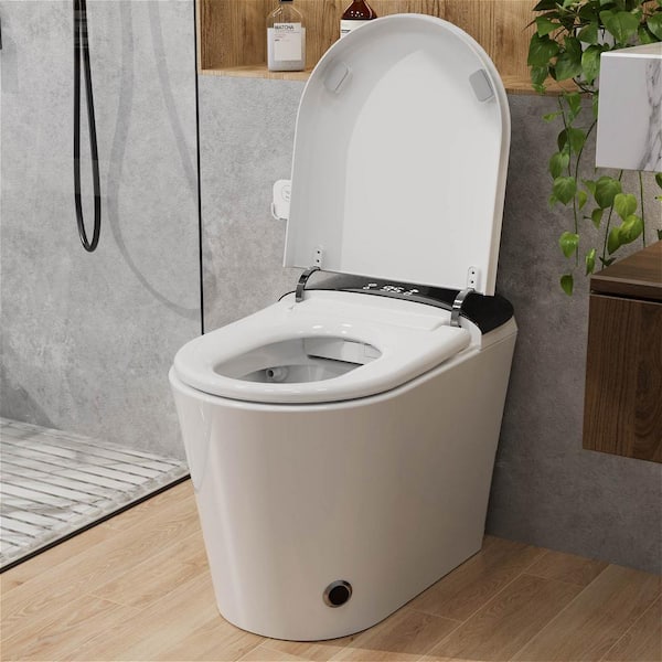 Smart Toilet Bidet 1.32 GPF Built-In Water Tank Elongated in White Black with Warm Air Dryer, Child Cleaning, Auto Flush