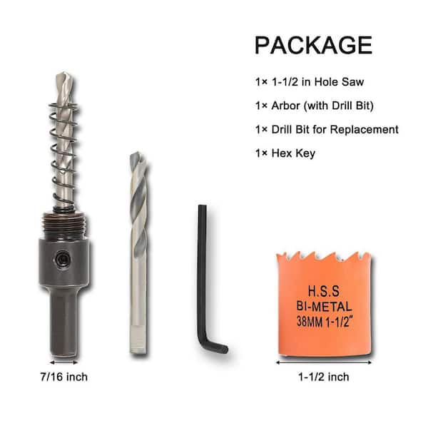 1-1/2 in. Alloy Steel Hole Saw with Arbor for Metal Wood Plastic, 1.5 in Bimetal Hole Cutter for Different Project