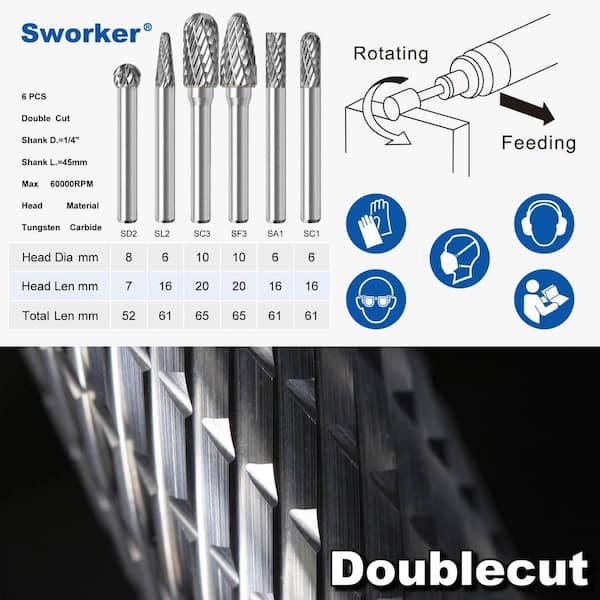 1/4 in. Tungsten Carbide Rotary Bit, Double-Cut Carbide Burr Set (6-Piece)
