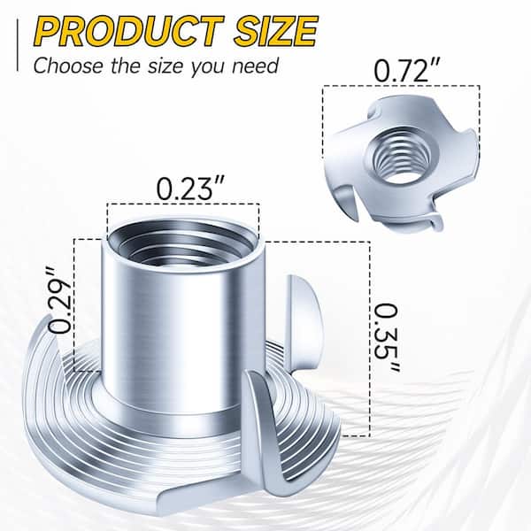 100-Piece 1/4-20 in. T Nuts Kit with Matching Stainless Steel Bolts, Zinc-Plated Alloy Steel, 4-Pronged Nuts