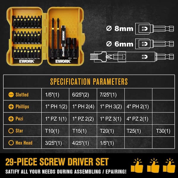 Screwdriver Bit Set 1/4 Hex Shank S2 Alloy Steel 29-Piece Magnetic Screwdriver Bits (29-Piece)