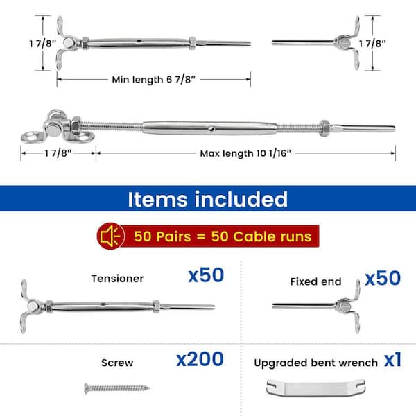 T316 Stainless Steel Cable Railing Hardware Kit for Cable Railing System, Swage Toggle Turnbuckle (50-Pack)
