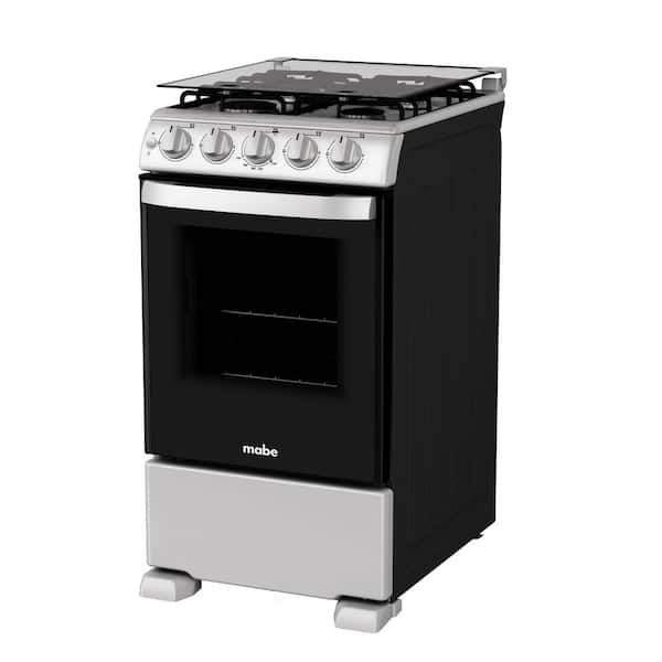 20 in 4 Burner Gas Floor Stove in Silver Mercury with Cast Iron Grills, Easy Clean Pro Interior, and Perfect Cook Oven