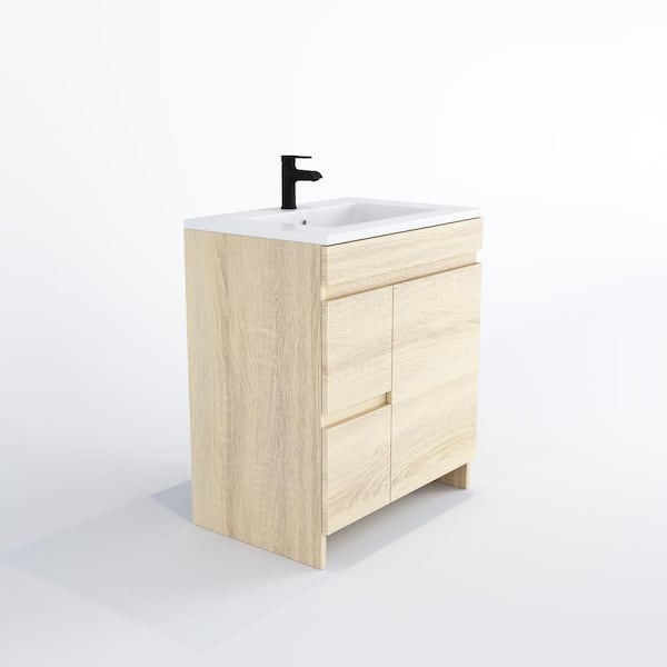 Mace 30 in. W x 20 in. D Single Sink Bathroom Vanity Left Side Drawers In White Oak With Acrylic Integrated Countertop