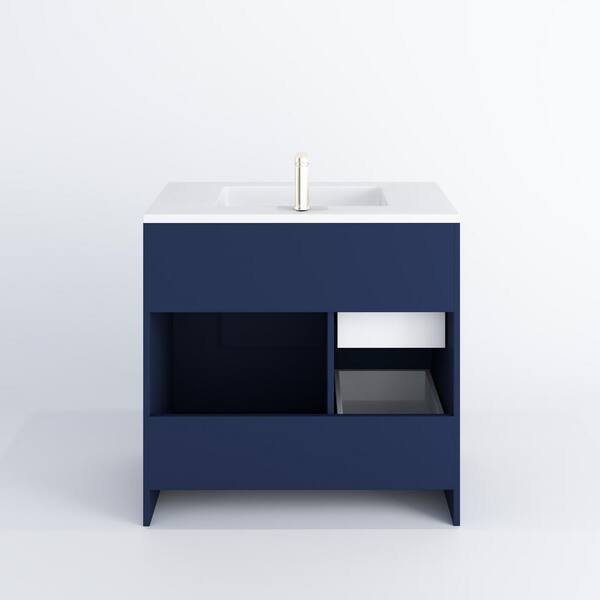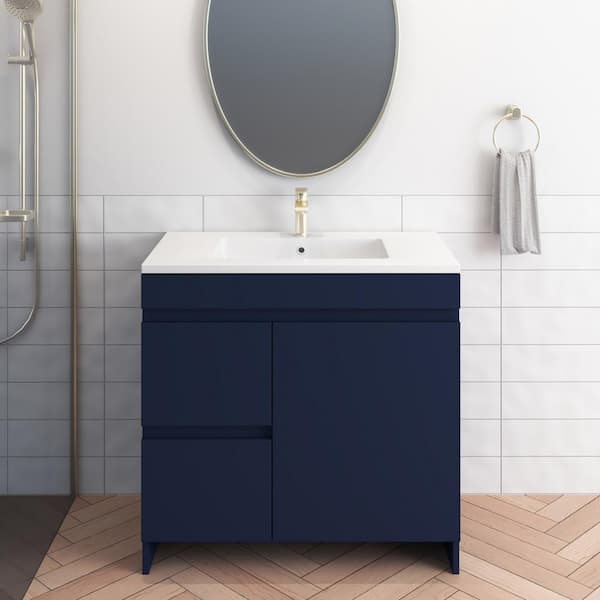 Mace 36 in. W x 20 in. D Single Sink Bathroom Vanity Left Side Drawers In Navy Blue With Acrylic Integrated Countertop