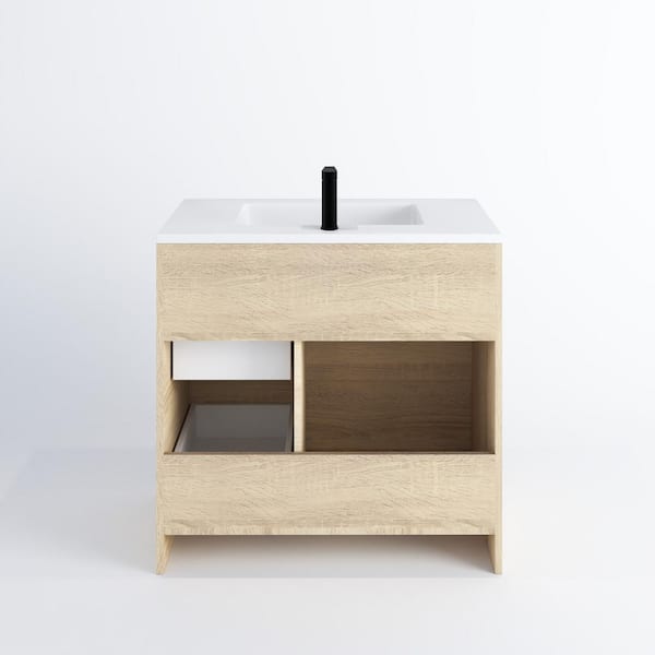Mace 36 in. W x 20 in. D Single Sink Bathroom Vanity Right Side Drawers In White Oak With Acrylic Integrated Countertop