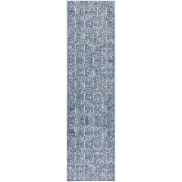 Machine Washable Series 1 Blue 2 ft. x 10 ft. Geometric Contemporary Runner Area Rug