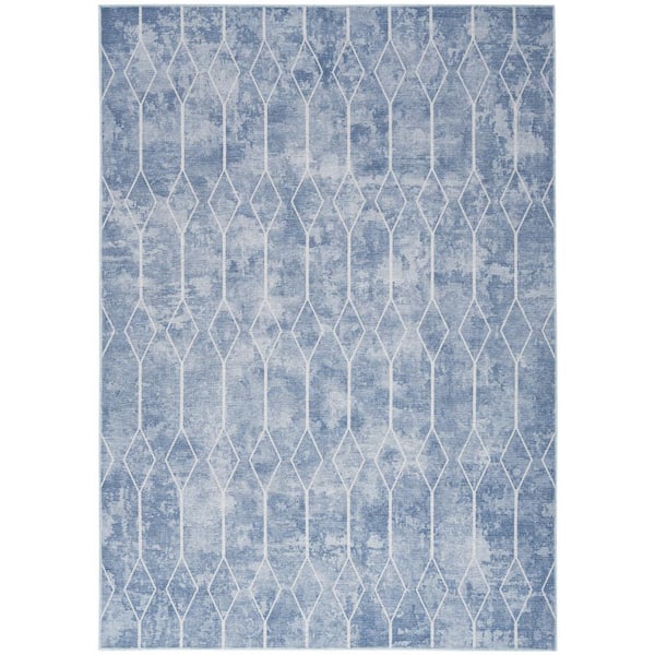 Machine Washable Series 1 Blue 8 ft. x 10 ft. Geometric Contemporary Area Rug