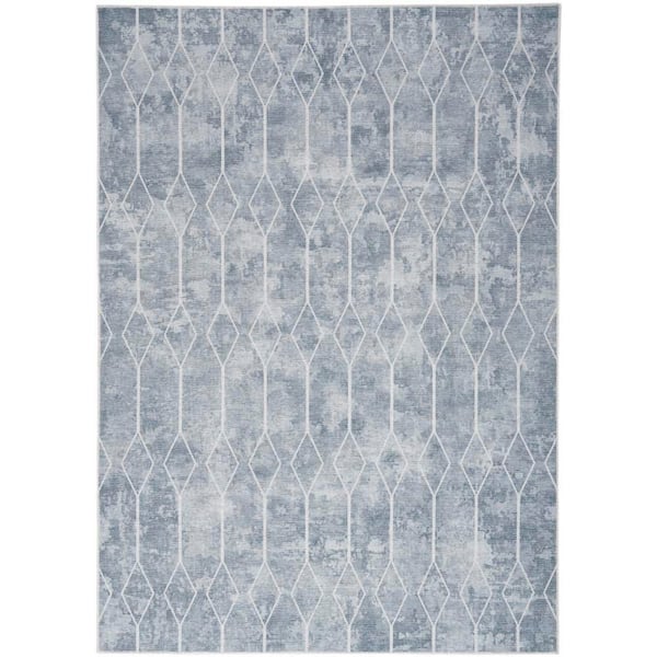 Machine Washable Series 1 Blue Grey 6 ft. x 9 ft. Geometric Contemporary Area Rug