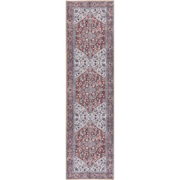 Machine Washable Series 1 Brick Ivory 2 ft. x 10 ft. Distressed Traditional Runner Area Rug