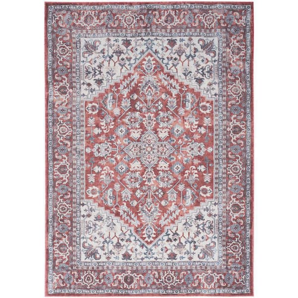 Machine Washable Series 1 Brick Ivory 5 ft. x 7 ft. Distressed Traditional Area Rug
