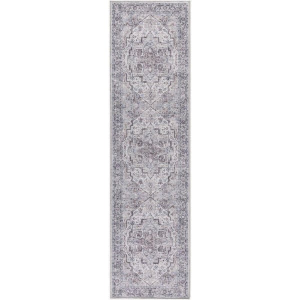 Machine Washable Series 1 Ivory Beige 2 ft. x 8 ft. Distressed Traditional Runner Area Rug