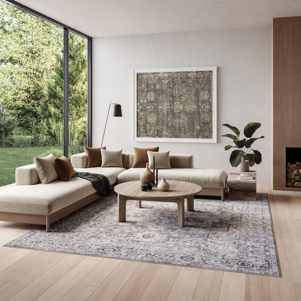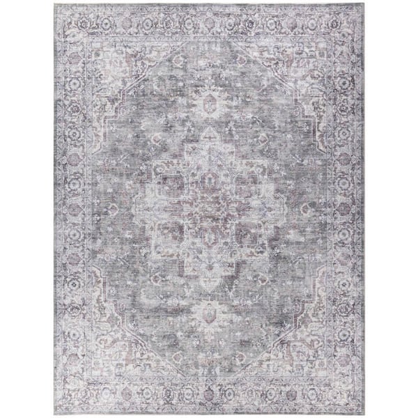 Machine Washable Series 1 Ivory Grey 10 ft. x 14 ft. Distressed Traditional Area Rug