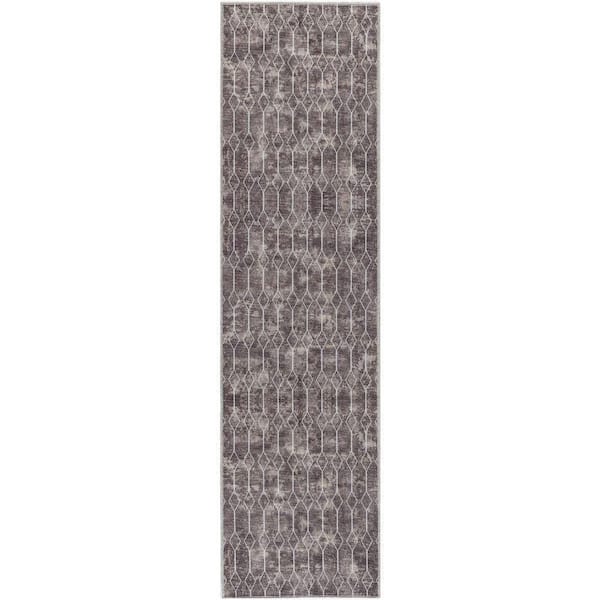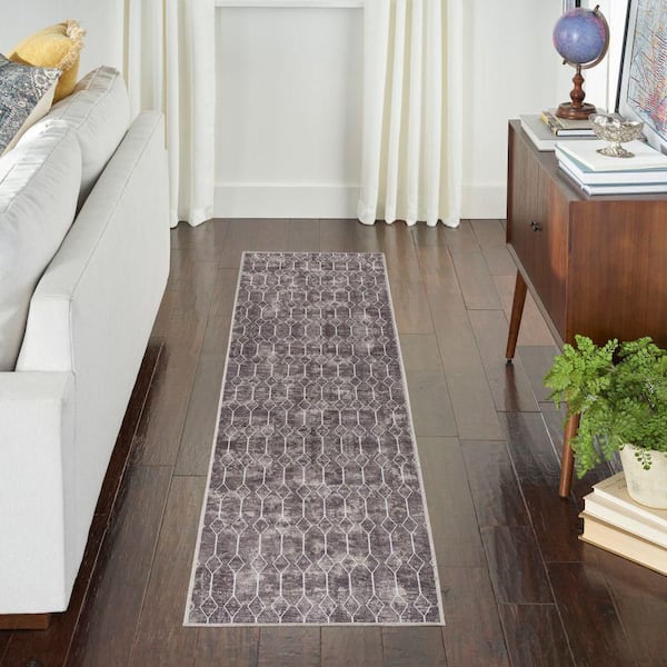 Machine Washable Series 1 Mocha 2 ft. x 6 ft. Geometric Contemporary Runner Area Rug