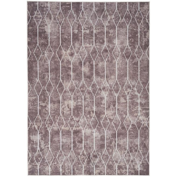 Machine Washable Series 1 Mocha 6 ft. x 9 ft. Geometric Contemporary Area Rug