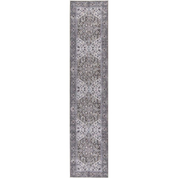 Machine Washable Series 1-Olive Ivory 2 ft. x 10 ft. Distressed Traditional Runner Area Rug