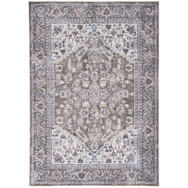 Machine Washable Series 1 Olive Ivory 6 ft. x 9 ft. Distressed Traditional Area Rug