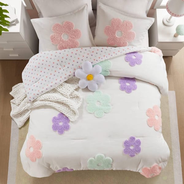 Madeline 4-Piece White/Purple Polyester Full/Queen Comforter Set