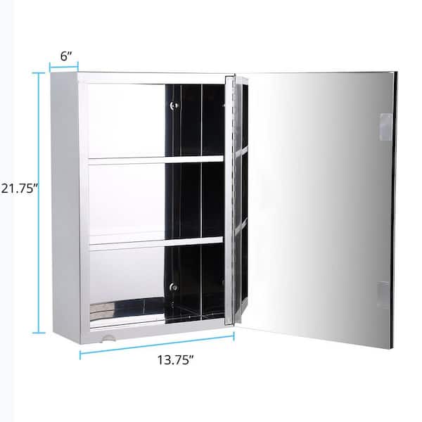 Madi 13-3/4 in. Width x 21-3/4 in. Height Stainless Steel Recessed or Surface Mount Bathroom Medicine Cabinet