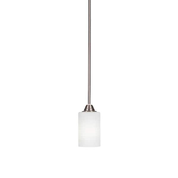 Madison 100-Watt 1-Light Brushed Nickel Shaded Pendant Light with 4 in. White Matrix Glass Shade, No bulb Included