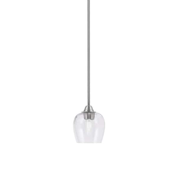Madison 100-Watt 1-Light Brushed Nickel Shaded Pendant Light with 6 in. Clear Bubble Glass Shade, No Bulb Included