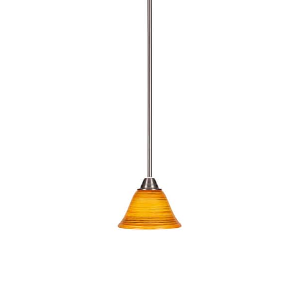 Madison 100-Watt 1-Light Brushed Nickel Shaded Pendant Light with 7 in. Fire Saturn Glass Shade, No Bulb Included