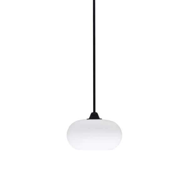 Madison 100-Watt 1-Light Matte Black Shaded Pendant Light with 10 in. White Muslin Shade, No Bulb Included