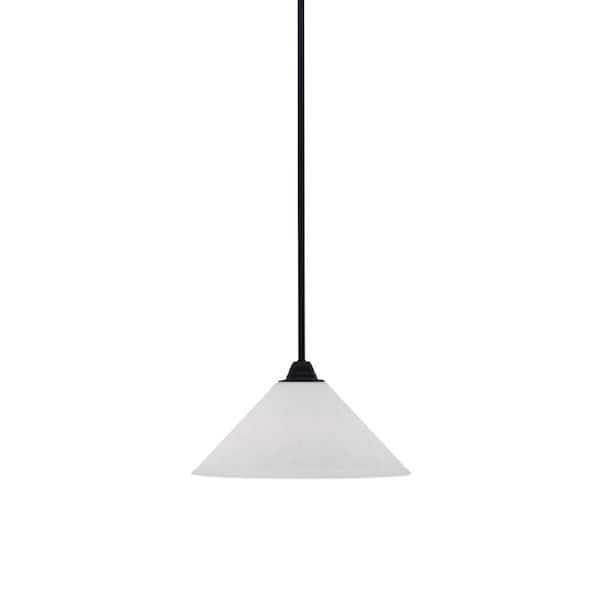 Madison 100-Watt 1-Light Matte Black Shaded Pendant Light with 10 in. White Muslin Shade, No Bulb Included