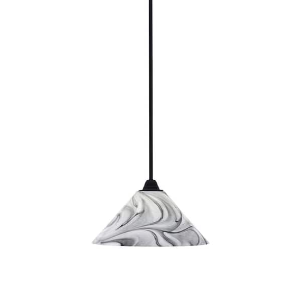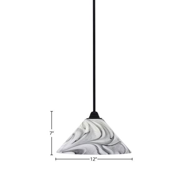 Madison 100-Watt 1-Light Matte Black Shaded Pendant Light with 12 in. Onyx Swirl Shade, No Bulb Included