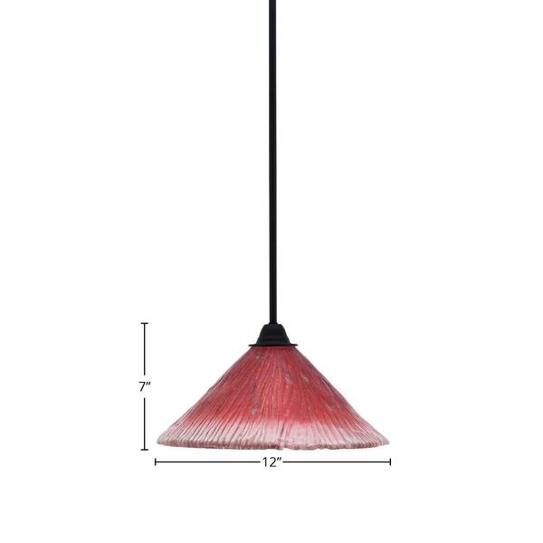 • Matte Black Pendant Light with 12 in. Raspberry Crystal Glass