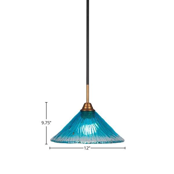 Madison 100-Watt 1-Light Matte Black Shaded Pendant Light with 12 in. Teal Crystal Glass Shade, No Bulb Included