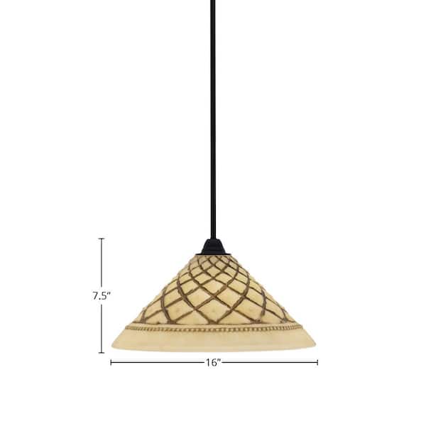 Madison 100-Watt 1-Light Matte Black Shaded Pendant Light with 16 in. Chocolate Icing Shade, No Bulb Included