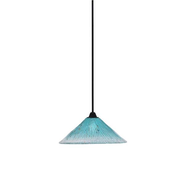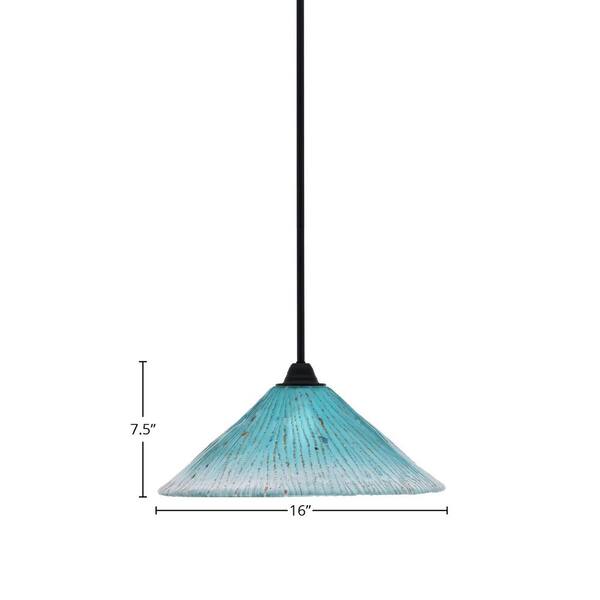 Madison 100-Watt 1-Light Matte Black Shaded Pendant Light with 16 in. Teal Crystal Shade, no Bulb Included