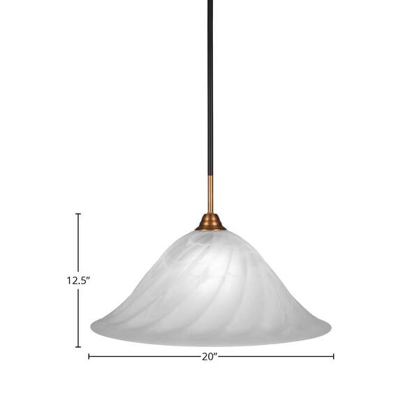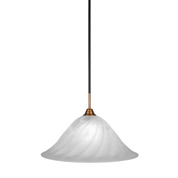 Madison 100-Watt 1-Light Matte Black Shaded Pendant Light with 20 in. White Alabaster Swirl Glass Shade No Bulb Included