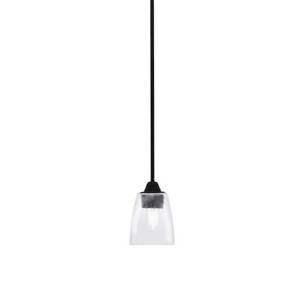 Madison 100-Watt 1-Light Matte Black Shaded Pendant Light with 4.5 in. Clear Bubble Shade, No Bulb Included