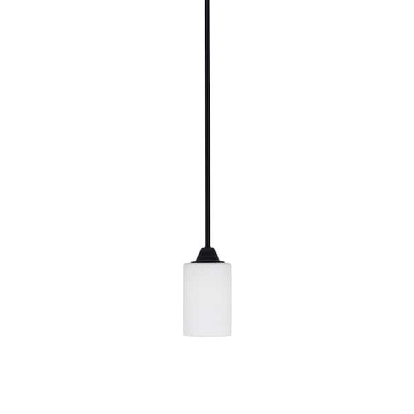 Madison 100-Watt 1-Light Matte Black Shaded Pendant Light with 4 in. White Muslin Shade, no Bulb Included