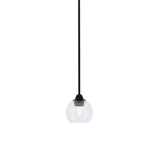 Madison 100-Watt 1-Light Matte Black Shaded Pendant Light with 5.75" Clear Bubble Shade, No bulb included