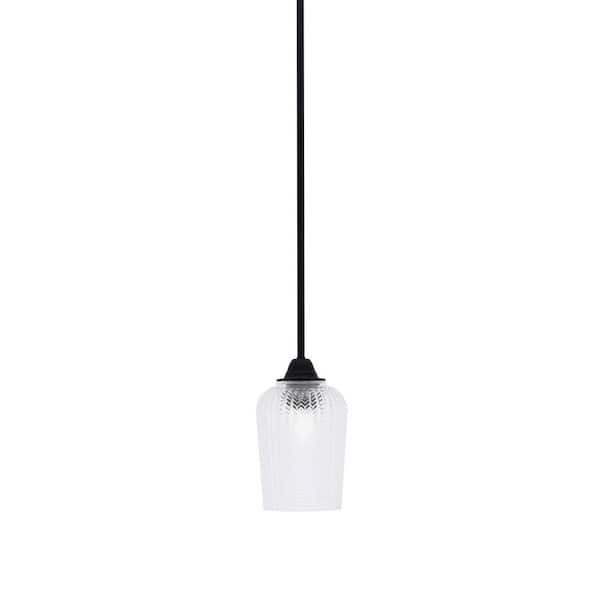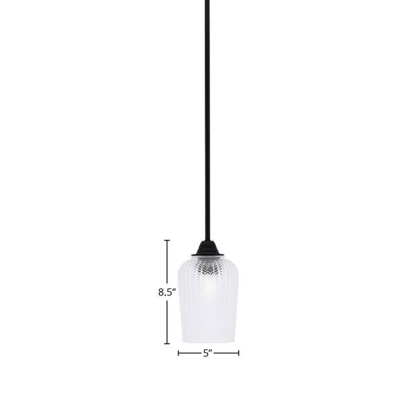 Madison 100-Watt 1-Light Matte Black Shaded Pendant Light with 5 in. Clear Textured Shade, No Bulb Included