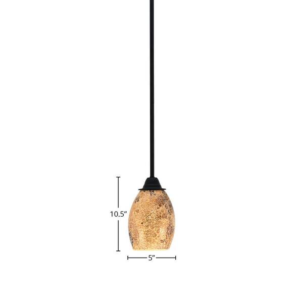 • Matte Black Pendant Light with Gold Fusion Glass Shade