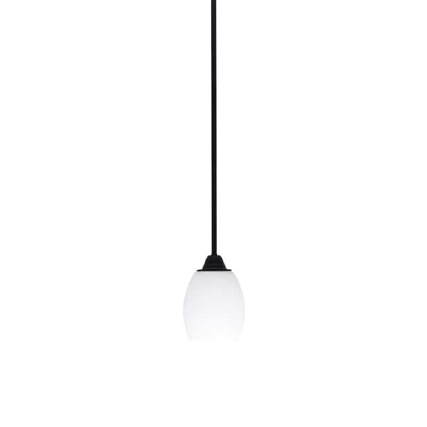 Madison 100-Watt 1-Light Matte Black Shaded Pendant Light with 5 in. White Linen Shade, No bulb Included