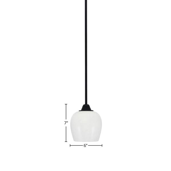 Madison 100-Watt 1-Light Matte Black Shaded Pendant Light with 6" White Marble Shade, No bulb included